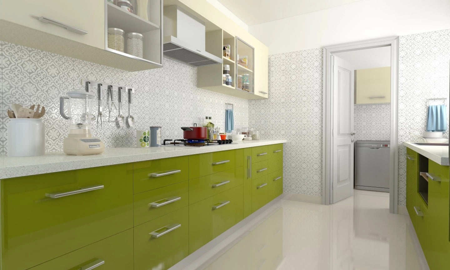 Boasting a moroccan-inspired backsplash and ample countertop space, this happy green modular kitchen is just the thing you need for whipping meals for friends and family. High-quality materials that ensure durability Features a wide range of modular cabinets that provide storage solutions
