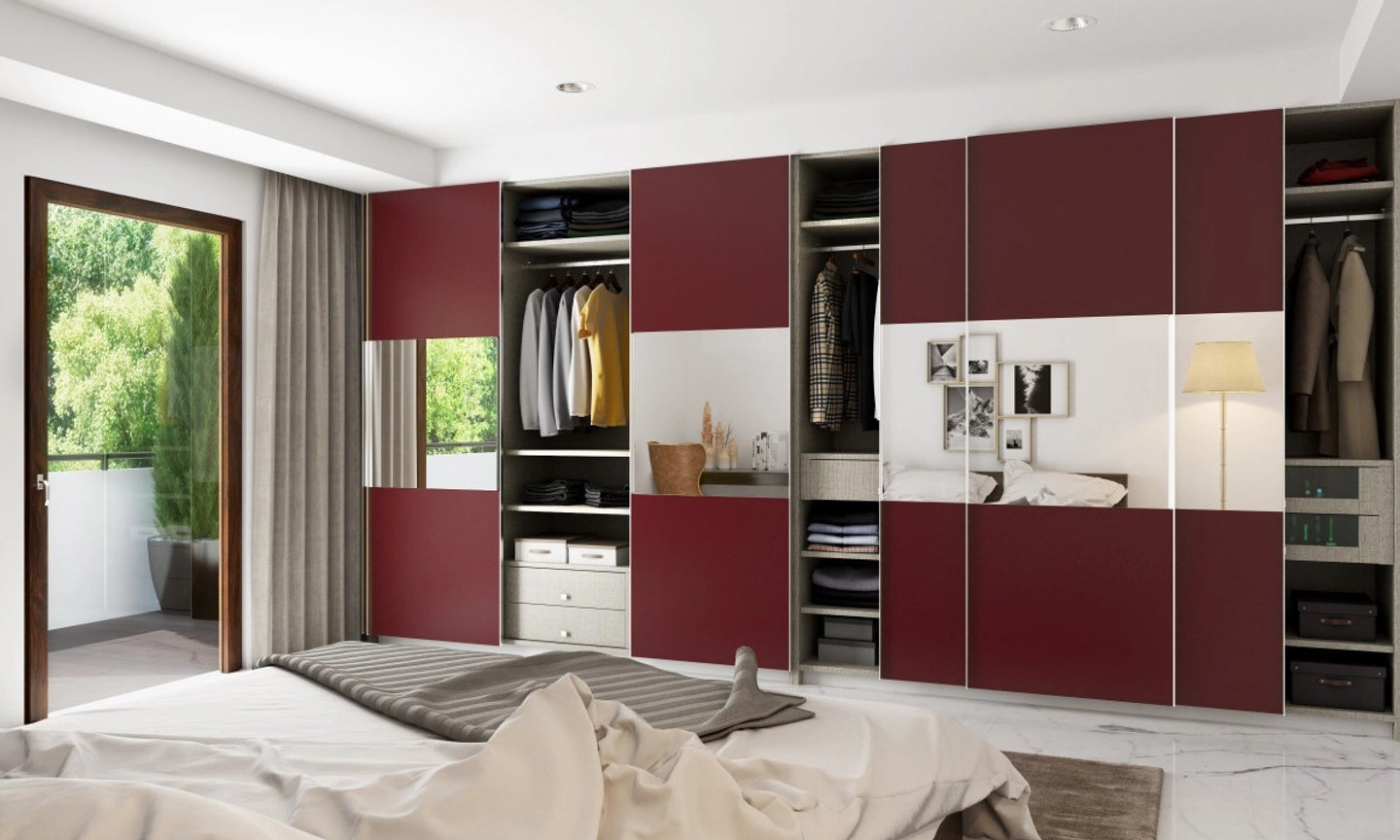 This chic looking wardrobe is brushed with a maroon high gloss finish that assures to shelter all your requirements. This space saving wardrobe with sliding doors has a room for every minute belonging.